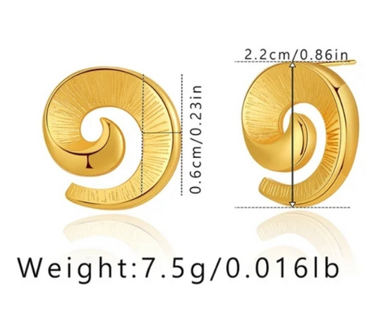 18K Gold Plated Vintage Spiral Irregular Hoop, Hypoallergenic, Stainless Steel Geometric Earrings